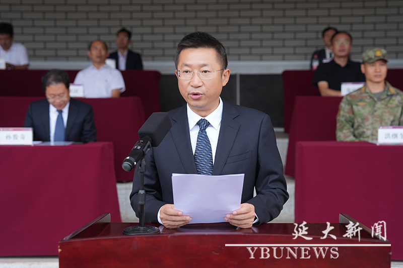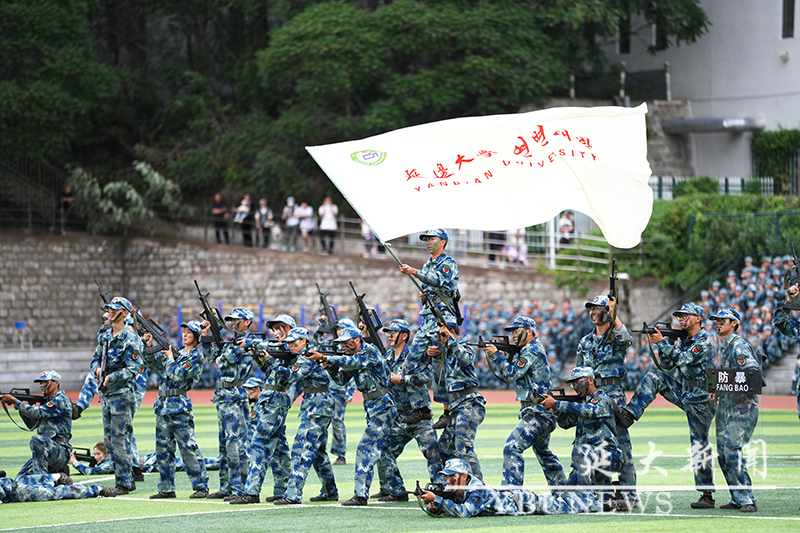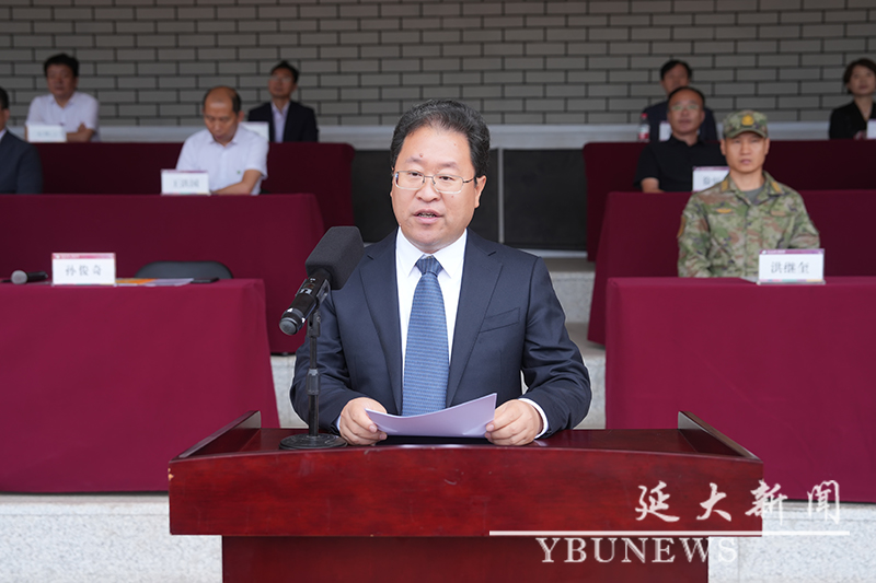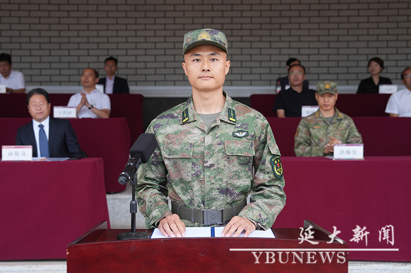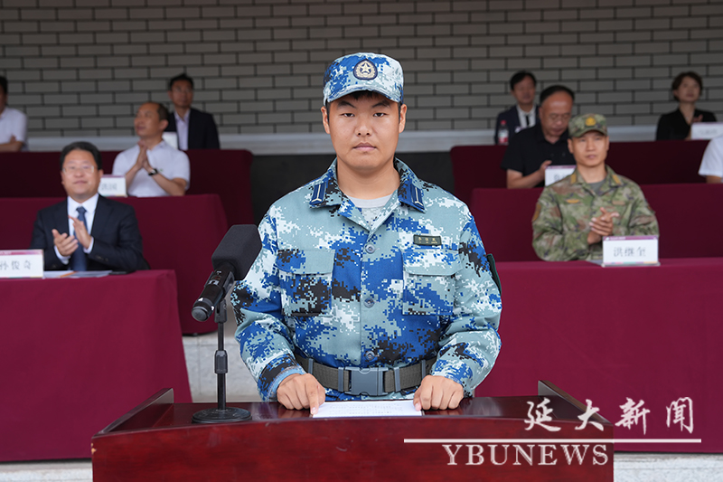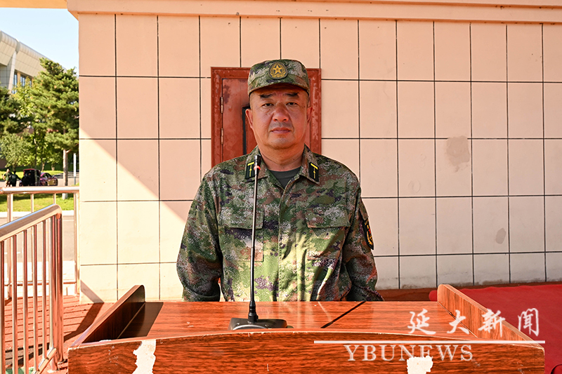 孙俊奇在大会上讲话。他表示,军训是大学的“第一课”,也是延大学子人生中一次特殊的“成人礼”,在承训部队教官们宽严相济的训练下,同学们经历了爱国主义、集体主义、革命英雄主义的教育洗礼,圆满完成了训练科目,充分展现出新时代延大学子的青春风采;军训让“爱党、爱国、爱军”的种子在同学们心中深深扎根,培养了广大学子的纪律意识、团队精神和坚韧品格,这将成为延大学子成长和发展的强劲动力。