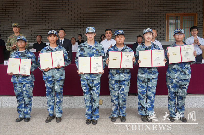 孙俊奇向延吉校区承训部队赠送锦旗,于金欢向珲春校区承训部队赠送锦旗并讲话。17名教师荣获“优秀指导员”荣誉称号;6名教官荣获“优秀教官”荣誉称号;120名同学荣获“优秀学员”荣誉称号。与会领导为获奖代表颁奖。王嘉硕、杨义全代表军训优秀教官发言;护理学院李岩、经济管理学院关楷文代表军训优秀指导员发言;农学院动物医学专业李佳晟、地理与海洋科学学院地理科学类徐鸿博代表军训优秀学员发言。