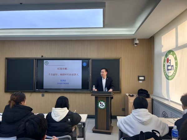 12月25日上午,延边大学校党委常委、副校长张学武以《不负韶华,做新时代的追梦人》为题,在求真楼511教室为体育学院2024级运动训练专业学生带来了一堂入耳入脑入心的思政课。
