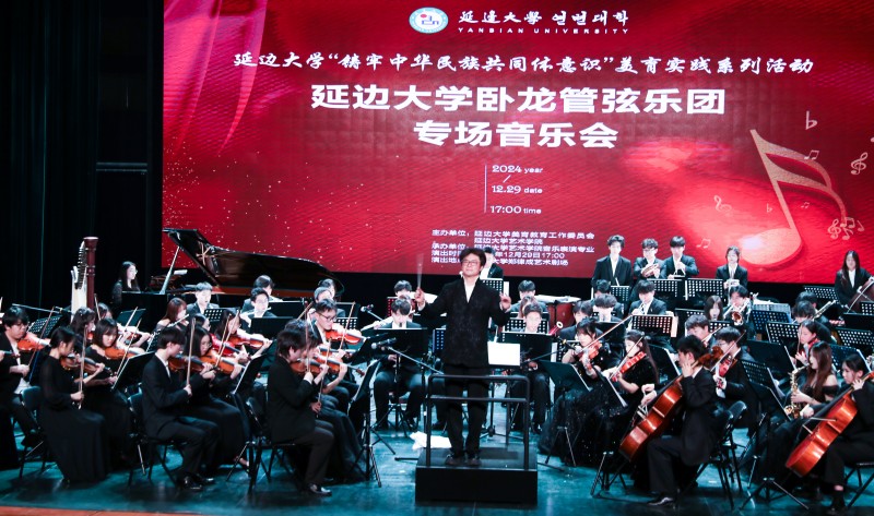12月29日,由美育教育工作委员会和艺术学院共同主办,艺术学院音乐表演专业承办的“铸牢中华民族共同体意识”美育实践系列活动——延边大学卧龙管弦乐团专场音乐会在郑律成艺术剧场隆重上演。延边大学美育工作委员会委员、艺术学院党政领导班子以及各专业主任、书记、教师出席了音乐会。